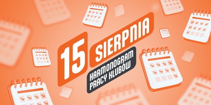 Jeśli planujecie trening w tym czasie, nic nie stoi na przeszkodzie, ponieważ w piątek 15 sierpnia, wszystkie nasze kluby będą czynne w standardowych godzinach.